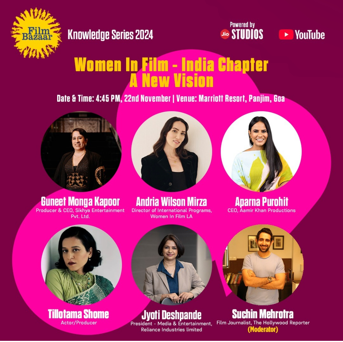 Our distinguished panel features Guneet Monga Kapoor, Andria Wilson Mirza, Aparna Purohit, Tillotama Shome, and Jyoti Deshpande, with Film Journalist Suchin Mehrotra (Moderator) steering the conversation.